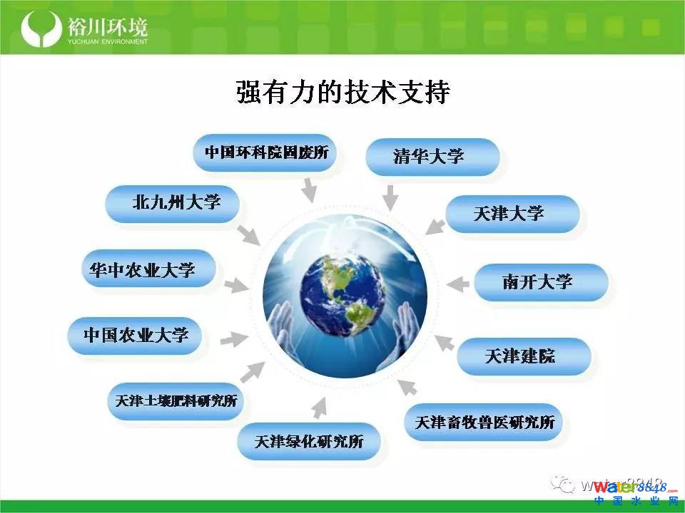 裕川環(huán)境是從2007年開始成立,我們從成立之初就致力于打造污泥處理處置和資源化的全產(chǎn)業(yè)鏈,目前已經(jīng)成為國(guó)內(nèi)外技術(shù)領(lǐng)先的污泥處理處置行業(yè)綜合方案解決者和提供商。天津裕川環(huán)境以自有知識(shí)產(chǎn)權(quán)的、國(guó)際領(lǐng)先水平的“微生物蛋白提取方式的污泥處理及資源化利用技術(shù)”為核心,形成了從研發(fā)到項(xiàng)目投資、建設(shè)、運(yùn)行、裝備制造和資源化產(chǎn)品生產(chǎn)、銷售的全產(chǎn)業(yè)鏈。大家現(xiàn)在可以從公司的架構(gòu)上看到,裕川環(huán)境現(xiàn)有的資源化產(chǎn)品公司包括:天津紐艾格農(nóng)業(yè)科技有限公司、內(nèi)蒙古艾格潤(rùn)農(nóng)業(yè)科技有限公司、山東裕健環(huán)境保護(hù)工程有限公司和山西中農(nóng)國(guó)盛生物科技有限公司;裕川目前把多肽類綠色功能性肥料用于生態(tài)農(nóng)業(yè)作為裕川環(huán)境未來(lái)公司發(fā)展的重中之重。在座的做污泥行業(yè)的同仁都知道,污泥處理容易處置難,我們就要來(lái)解決處置的難題。污泥處理處置需要人才,我們與2017年初成立了裕川環(huán)境學(xué)院,裕川環(huán)境學(xué)院現(xiàn)在成為裕川培養(yǎng)“堿性熱水解+資源化”技術(shù)人才、管理人才的一個(gè)搖籃。裕川還擁有天津市唯一的省級(jí)污泥處理企業(yè)重點(diǎn)實(shí)驗(yàn)室。