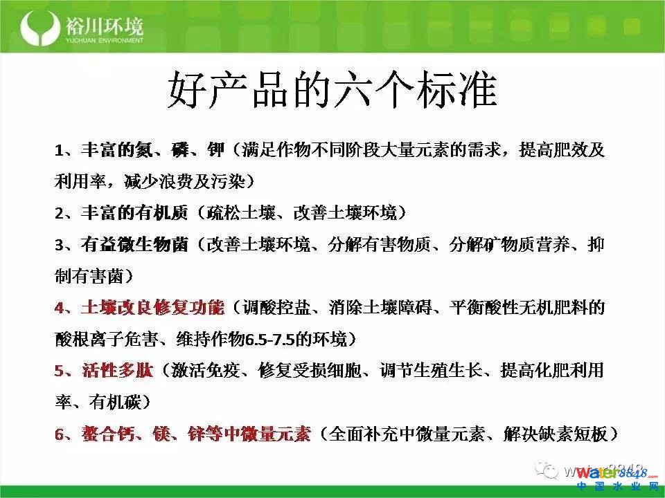 好有機(jī)肥產(chǎn)品的標(biāo)準(zhǔn):要有豐富的氮磷鉀、要有豐富的有機(jī)質(zhì)、有益微生物菌、對(duì)土壤要具有改良功能、同時(shí)要有活性多肽。所以裕川打造的是活性多肽,同時(shí)還有鰲合鈣。裕川人花過(guò)去十年的時(shí)間,我們就是希望能夠成為中國(guó)農(nóng)業(yè)綠色發(fā)展的有力倡導(dǎo)者。