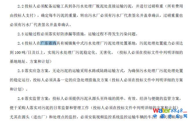 地方壟斷保護抬頭? 818廣東污泥項目招標2點獨特要求 投標人必須具備有效的城鎮(zhèn)集中式生活污水處理污泥(HY06)嚴控廢物處理許可證,其處理處置能力必須達到100噸/日及以上