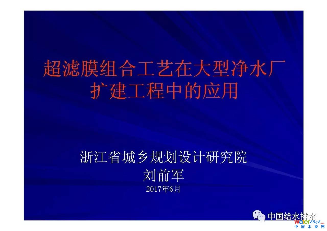 核心提示:超濾膜組合工藝在大型凈水廠擴(kuò)建過程中的應(yīng)用 劉前軍,工學(xué)博士,教授級(jí)高工。任職浙江省城鄉(xiāng)規(guī)劃設(shè)計(jì)研究院,多年從事城鎮(zhèn)給水和污水工程規(guī)劃、設(shè)計(jì)及相關(guān)科研工作。主持和參與了多座大型凈水廠(采用臭氧-活性炭、超濾膜等組合工藝)、污水廠及長距離、大口徑管道的設(shè)計(jì)工作。