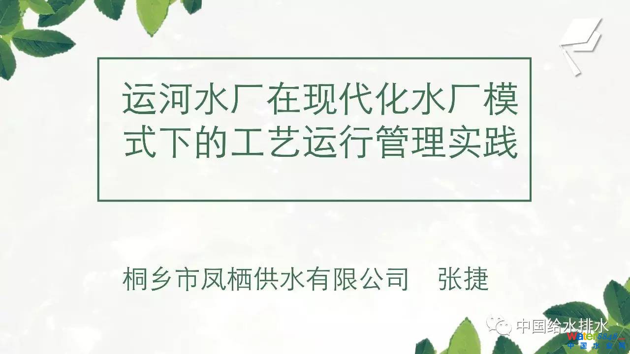 核心提示:運河水廠在現代化水廠模式下的工藝運行管理實踐 張捷,浙江湖州人,大學本科,桐鄉(xiāng)市鳳棲供水有限公司副總經理,高級工程師,從事微污染源水處理的工程建設以及工藝管理工作,曾獲桐鄉(xiāng)市十佳青年崗位能手、科技先進工作者等榮譽。
