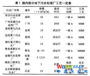 隨著我國城鎮(zhèn)化進程的加快和城市的快速擴張,過去那 些遙遠荒蕪的郊區(qū)正逐漸被繁華的城市“吞噬”。在如今土地 資源愈發(fā)“捉襟見肘”的大中型城市,這種問題尤為突出。地下式污水廠因為其社會環(huán)境效益好、占地省、噪音少等優(yōu)點成為現(xiàn)在污水廠的選擇趨勢。而在污水廠建設過程中,主要又有MBR和MBBR兩種工藝選擇。下表是目前國內地下污水處理廠所用工藝。