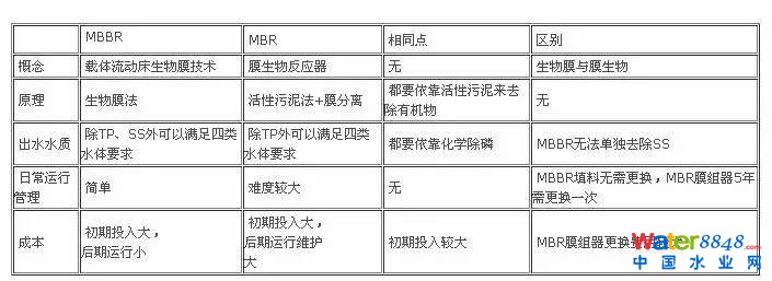 定義不同: MBR為膜生物反應器,MBBR為載體流動床生物膜技術。