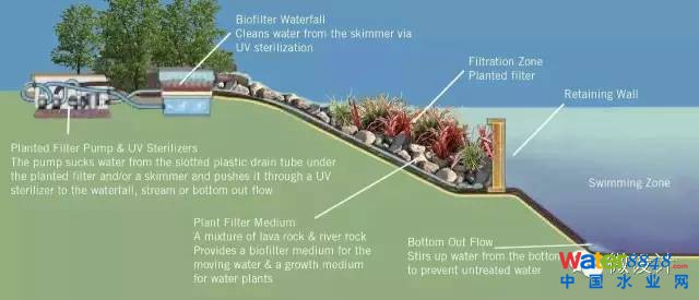 ▲天然游泳池的水循環(huán)系統(tǒng)