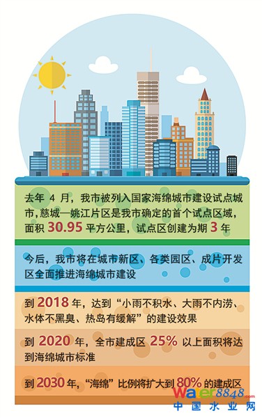 2016年4月,我市被列入國家海綿城市建設試點城市,慈城—姚江片區(qū)是我市確定的首個試點區(qū)域,面積30.95平方公里。試點區(qū)創(chuàng)建為期3年。經(jīng)過一年多時間的建設,試點區(qū)水澇治理初見成效。9個政府投資的在建項目完成海綿化改造。