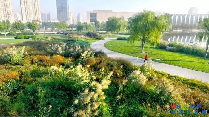 在調(diào)蓄溝中,水流得到滯留,雨水峰值變小,并通過終端設(shè)置的泵房送至生態(tài)凈化群落,經(jīng)過凈化過后進入中心湖中儲存。外排區(qū)域的雨水也會經(jīng)過收集和沉淀的過程,最后通過調(diào)蓄溝滯留后流入市政管網(wǎng)。