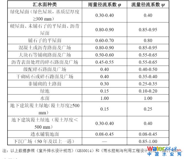 φ——綜合雨量徑流系數(shù),可參照表 3-1 進行加權(quán)平均計算;