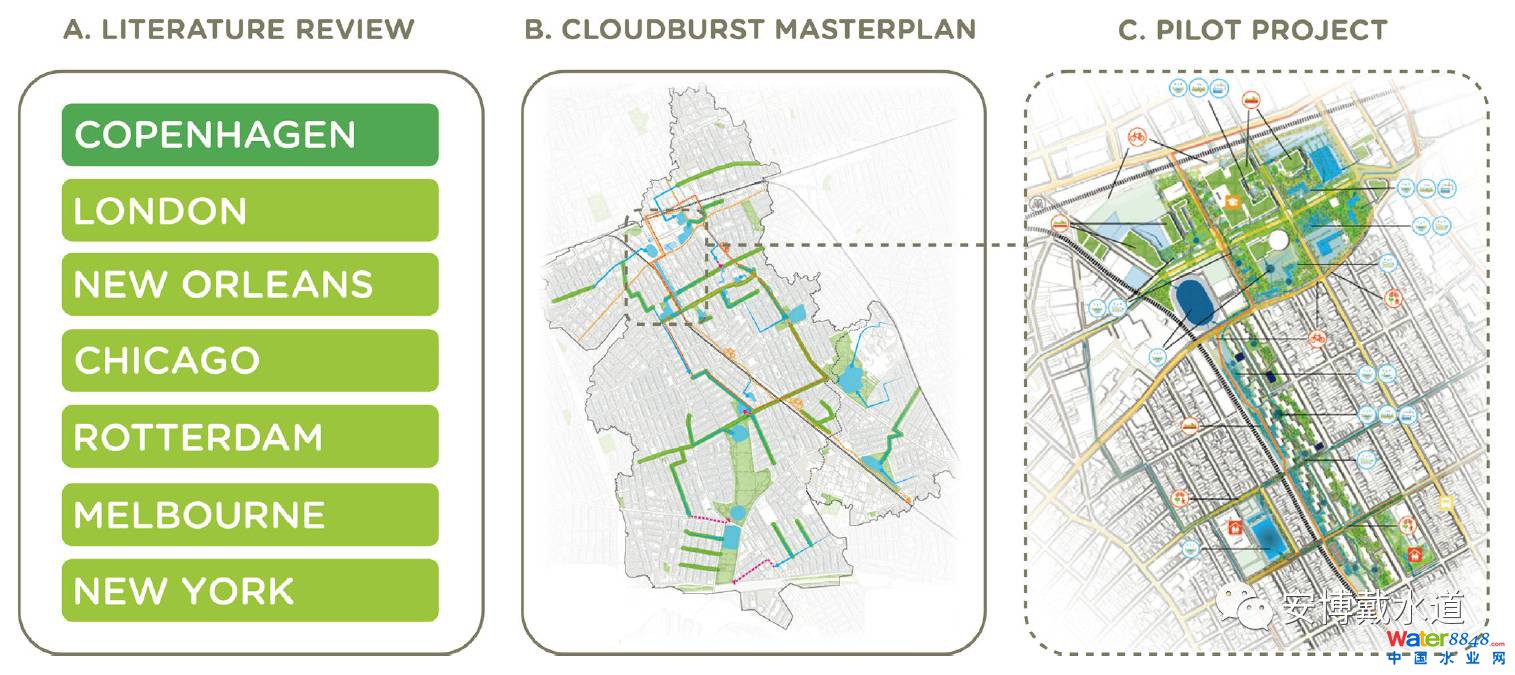 哥本哈根,一個擁有世界領(lǐng)先的暴雨管理系統(tǒng)的城市,用“暴雨計劃 Cloudburst”一詞來形榮降雨量在短時間內(nèi)達到一種極端的狀況。鑒于該研究建立在哥本哈根進行暴雨管理的經(jīng)驗基礎(chǔ)之上,因此在整個項目進行過程中都沿用該詞。