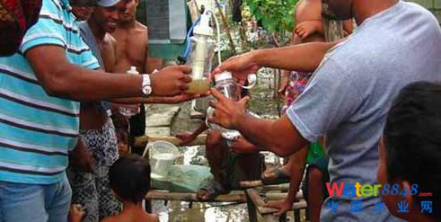 一個便攜式凈水瓶和一公斤的凝膠劑,再配有一個太陽能消毒測量儀器,就可以為一個家庭提供一年的純凈水。