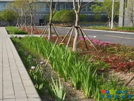 ③公共綠地與廣場一般有道路連接或環(huán)繞,在與道路相鄰一側(cè)的綠地宜與道路設(shè)計(jì)相結(jié)合,可運(yùn)用的海綿設(shè)施有生態(tài)樹池、生物滯留池等,保證公共綠地與廣場和道路的人流、車輛互不干擾。