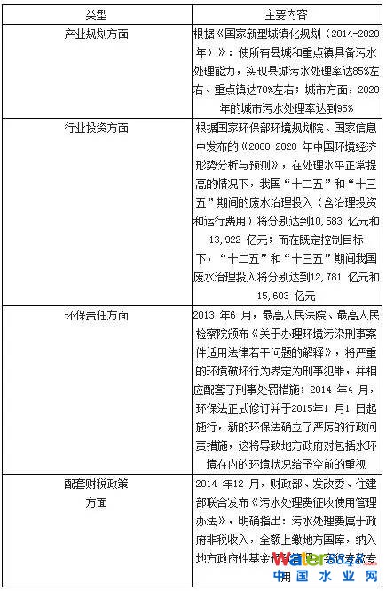 2014年4月,環(huán)保法正式修訂并于2015年1月1日起施行,新的環(huán)保法確立了嚴(yán)厲的行政問(wèn)責(zé)措施,這將導(dǎo)致地方政府對(duì)包括水環(huán)境在內(nèi)的環(huán)境狀況給予空前的重視。