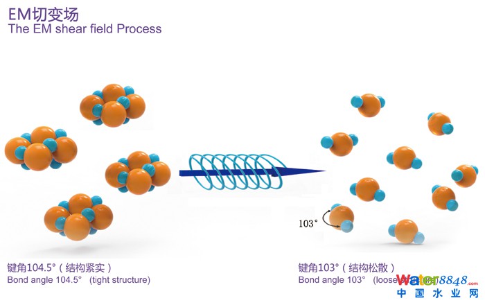 EM發(fā)生器(污水分子活化系統(tǒng)),主要是利用電磁(EM)切變理論,對(duì)污水中水分子、有機(jī)物分子、離子氛的團(tuán)簇結(jié)構(gòu)進(jìn)行高頻電磁場瞬間切變作用,打破原先污水中各個(gè)微觀形態(tài)體的團(tuán)簇結(jié)構(gòu),打破水分子與有機(jī)物分子及離子的水合、締合效應(yīng)。具體表現(xiàn)為: