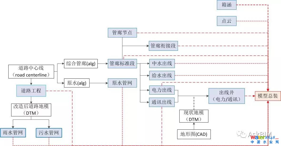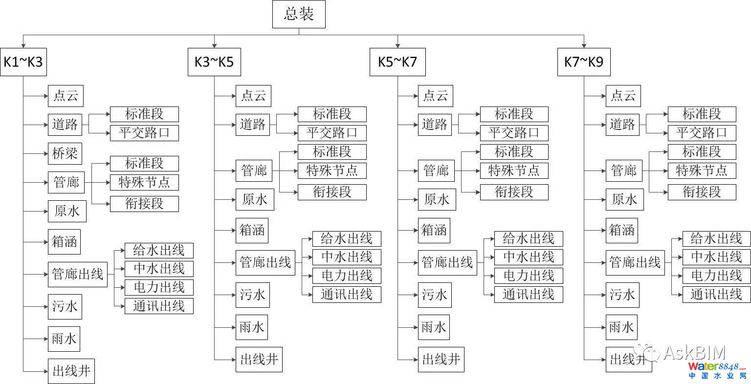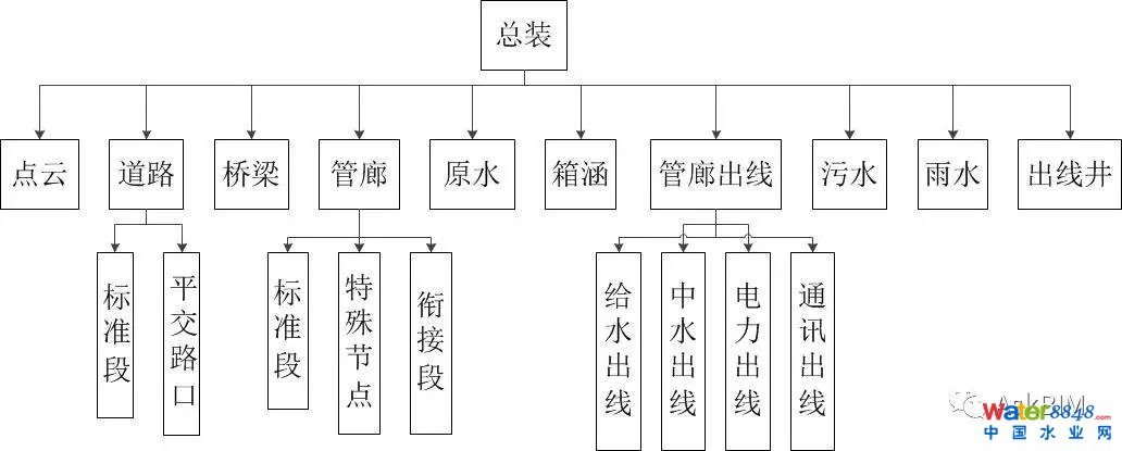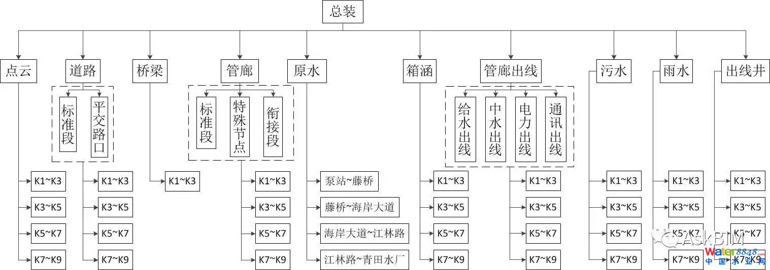 本次建模針對道路工程、原水工程、綜合管廊工程、廊內(nèi)管線出線(電力、通訊、中水、給水、廊內(nèi)集水池)、橋涵工程、雨水工程、污水工程。針對綜合管廊的節(jié)點進行建模(廊內(nèi)管線、預(yù)留預(yù)埋、消防、支吊架、支墩、廊內(nèi)排水),建模范圍K1+774~K9+424.4。