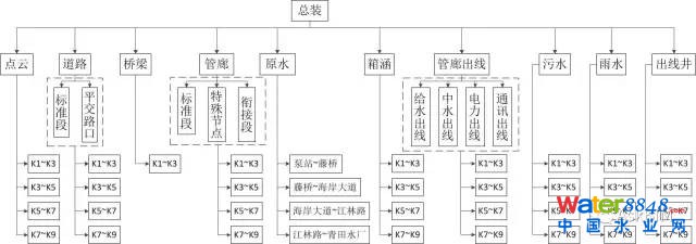 本次建模針對(duì)道路工程、原水工程、綜合管廊工程、廊內(nèi)管線出線(電力、通訊、中水、給水、廊內(nèi)集水池)、橋涵工程、雨水工程、污水工程。針對(duì)綜合管廊的節(jié)點(diǎn)進(jìn)行建模(廊內(nèi)管線、預(yù)留預(yù)埋、消防、支吊架、支墩、廊內(nèi)排水),建模范圍K1+774~K9+424.4。