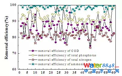 圖5 穩(wěn)定運(yùn)行時(shí)污染物的去除率
