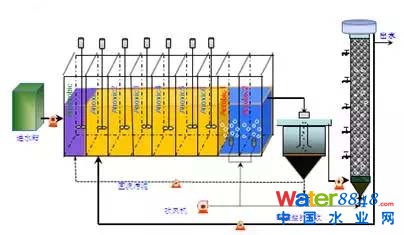 分段進(jìn)水A2/O工藝的優(yōu)勢(shì):氮磷去除率高;最大程度利用原水碳源;抗沖擊負(fù)荷,減小二沉池固體負(fù)荷;防止絲狀菌污泥膨脹;原污水處理廠更新改造簡單。