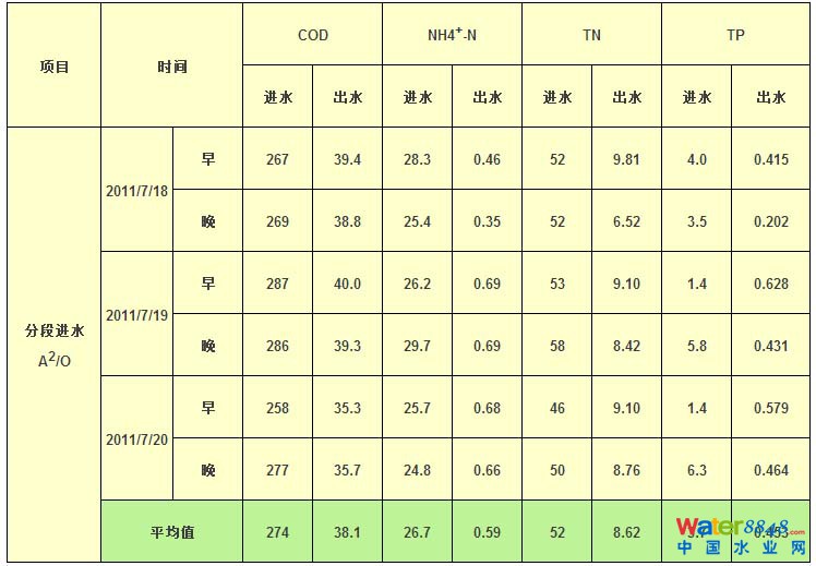 (1)分段進(jìn)水脫氮除磷工藝類型可以在不外加碳源的情況下,處理城市污水,出水達(dá)到一級(jí)A排放標(biāo)準(zhǔn),特別是出水TN達(dá)標(biāo)。
