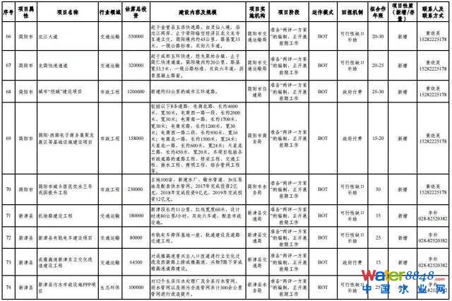 三是項(xiàng)目覆蓋面廣,實(shí)施條件成熟。推介項(xiàng)目涉及市政工程、交通運(yùn)輸、公共服務(wù)、生態(tài)環(huán)保、水利等領(lǐng)域,基本涵蓋經(jīng)濟(jì)社會(huì)發(fā)展關(guān)鍵領(lǐng)域和薄弱環(huán)節(jié)。同時(shí),項(xiàng)目經(jīng)各級(jí)黨委政府統(tǒng)籌規(guī)劃,層層篩選,前期經(jīng)過(guò)了較為充分的論證和測(cè)算,前期工作開(kāi)展及時(shí),其中部分項(xiàng)目PPP實(shí)施方案已經(jīng)完成,其余項(xiàng)目也正在抓緊完成PPP實(shí)施方案的編制,具備轉(zhuǎn)化為政府和社會(huì)資本合作項(xiàng)目的良好條件。