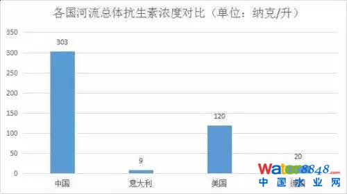 與國(guó)外相比,中國(guó)河流總體抗生素濃度較高,測(cè)量濃度最高達(dá)7560納克/升。