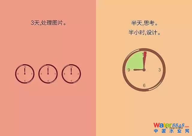 初級設計師用1-3天時間處理圖片。高級設計師通常先花半天的時間思考,只花半個小時做設計。