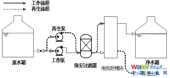 環(huán)境友好。電吸附的工作和再生過程,無需任何化學(xué)藥劑。與離子交換技術(shù)相比,減少了在濃酸、濃堿的運輸、貯存和操作上的麻煩,而且不向外界排放酸堿中和液;與反滲透相比,無需加入還原劑、分散劑、阻垢劑等。所排放的濃水系來自于原水,系統(tǒng)本身不產(chǎn)生新的排放物,排放不超標,回收經(jīng)濟性好,從而避免了二次污染問題。