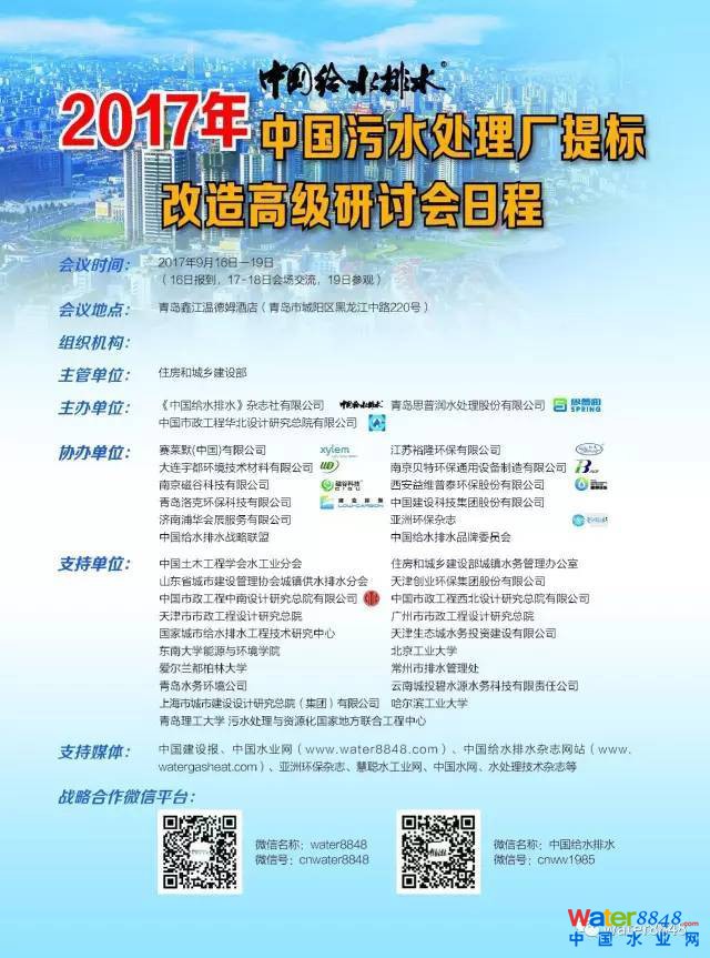 中國給水排水直播:智慧水務與科技創(chuàng)新高峰論壇 直播時間:2023年11月25日(周六) 13:30 2023-11-25 13:30:00 開始 中國水協(xié)團體標準《城鎮(zhèn)污水資源與能源回收利用技術規(guī)程》宣貫會通知 中國城鎮(zhèn)供水排水協(xié)會