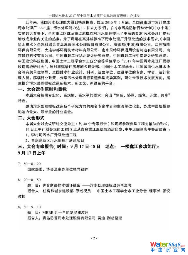 《水工藝工程雜志》系列網絡報告|學術論文寫作之我見 直播時間:2023年10月19日(周四)19:00 2023-10-19 19:00:00 開始 污水處理廠污泥減量技術研討會 直播時間:2023年10月20日13:30-17:30 2023-10-20 13:30:00 開始