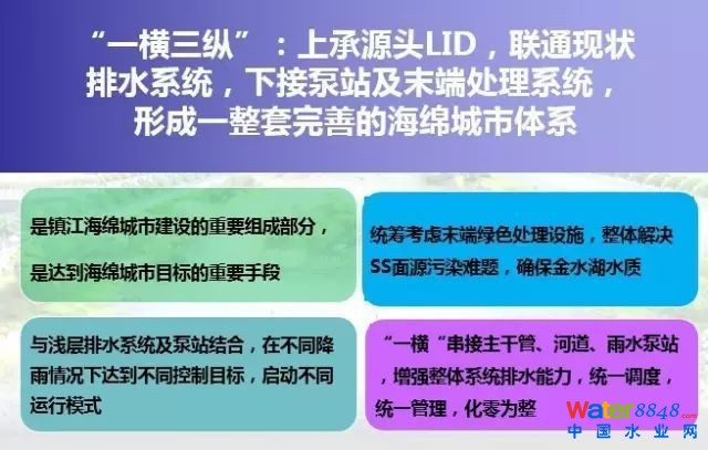 針對鎮(zhèn)江城市老城區(qū)雨污合流和CSO溢流問題、初期雨水污染問題和河道治理問題的現(xiàn)狀需求,加上海綿城市年徑流總量控制率、年徑流污染控制率和內澇防治的三大目標要求,源頭綠色LID充分建設仍然滿足不了水質水量耦合目標,中心提出沿金山湖多功能大口徑管道系統(tǒng)方案,對現(xiàn)狀管網灰色系統(tǒng)進行有效補充,完成區(qū)域海綿城市建設目標,建設科學合理完善的海綿城市工程體系和聯(lián)合運行調度體系,實現(xiàn)海綿城市建設的系統(tǒng)集成創(chuàng)新。