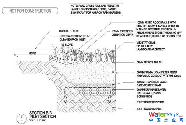 -取消雨水花園一側(cè)的側(cè)石以確保雨水可進(jìn)入花園,提供額外的溢水口