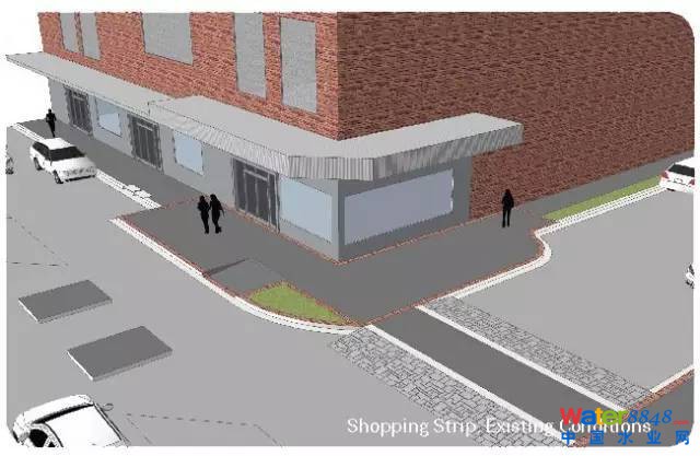 寬闊的人行及店鋪前的大樹,對(duì)雨水花園及景觀有較大限制