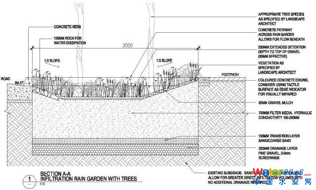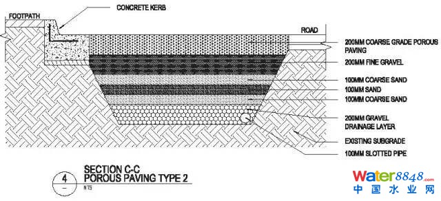 -陰溝可能被使用(但不是必需的),加強(qiáng)路面及綠化帶滲透存儲(chǔ)能力