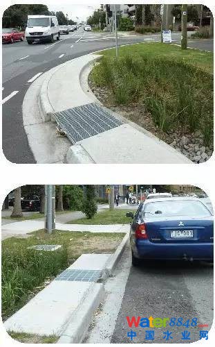 在人行道交叉口設(shè)計(jì)雨水花園;