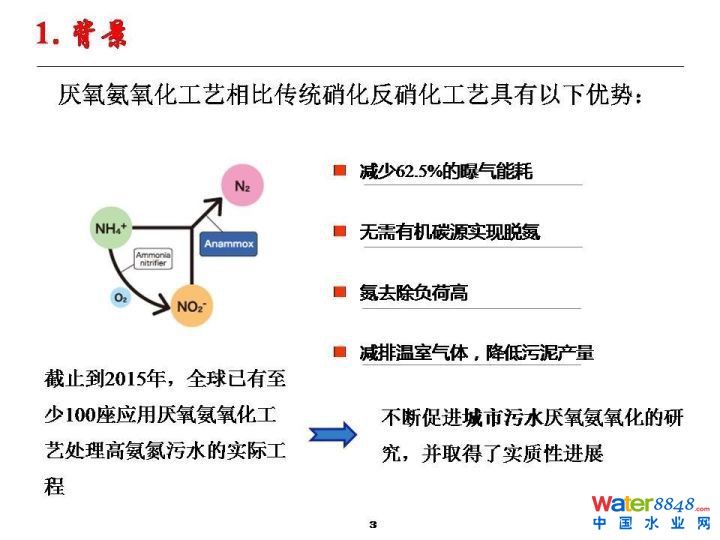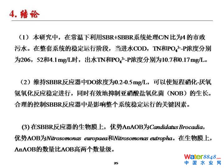 近年來,隨著氮、磷有機(jī)物排放量的急劇增加,有效降低廢水中氮、磷濃度已成為現(xiàn)代廢水處理領(lǐng)域的研究開發(fā)和應(yīng)用熱點(diǎn)。這是一份25頁的PPT,對城市污水厭氧氨氧化脫氮進(jìn)行了詳細(xì)的研究,我們來看一下彭永臻院士團(tuán)隊(duì)的研究成果(最下方附有相應(yīng)的演講視頻)。
