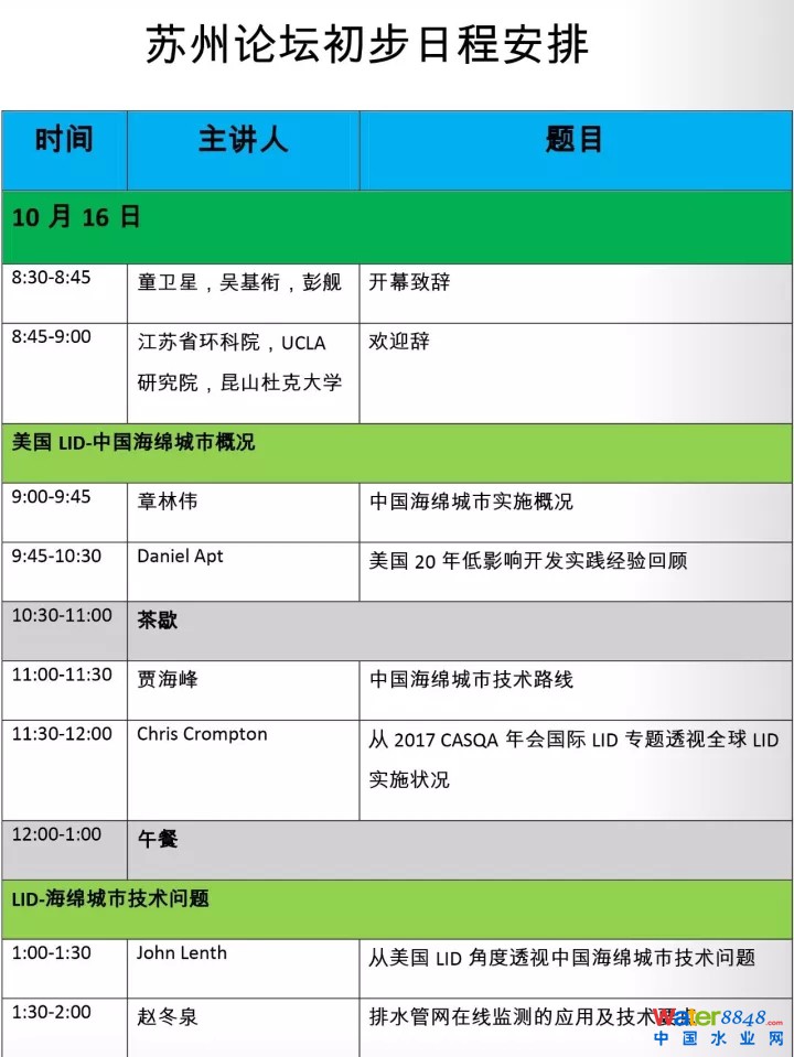 2017年洛杉磯環(huán)境論壇蘇州分論壇由南加州環(huán)保協(xié)會(SCCAEPA)和江蘇省環(huán)科院主辦,洛加大(蘇州)先進(jìn)技術(shù)研究院和蘇州市清澤環(huán)境技術(shù)有限公司承辦,昆山杜克大學(xué)協(xié)辦,于10月16-17日在昆山杜克大學(xué)舉辦。2017年洛杉磯環(huán)境論壇蘇州分論壇專題為:海綿城市、智慧城市和流域管理。由二十多位國內(nèi)和歐美低影響開發(fā)和海綿城市專家主講,代表了業(yè)界國際領(lǐng)先水平。論壇期間我們將會提供中文同聲傳譯服務(wù)