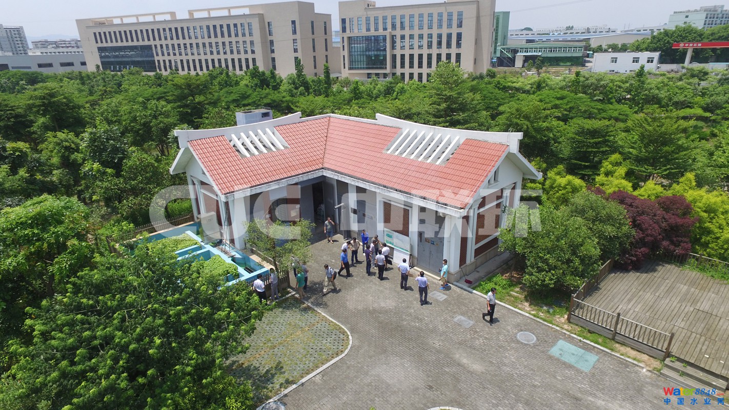 在廈門集美區(qū)中航城,一座掩映在綠樹花叢中的新型污水處理站與小區(qū)比肩而鄰,“中聯(lián)環(huán)海綿城市王浩院士工作站”的牌匾熠熠生輝。污水處理站二層小樓前的木質(zhì)平臺上,放著一把太陽傘和一張咖啡桌,沒有機器的轟鳴,沒有異味的空氣,儼然就是一座休閑場所。