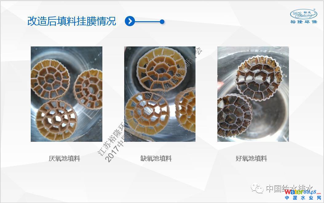 改造運(yùn)行一段時(shí)間之后,可以看出填料表面掛膜是明顯,生物量十分豐富。