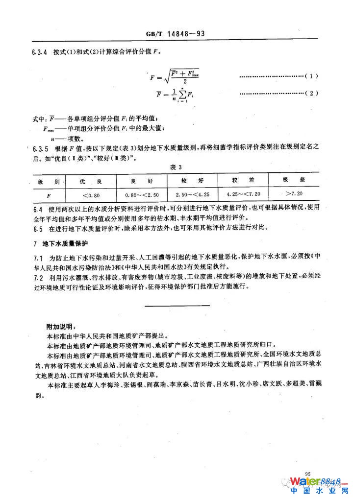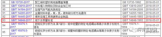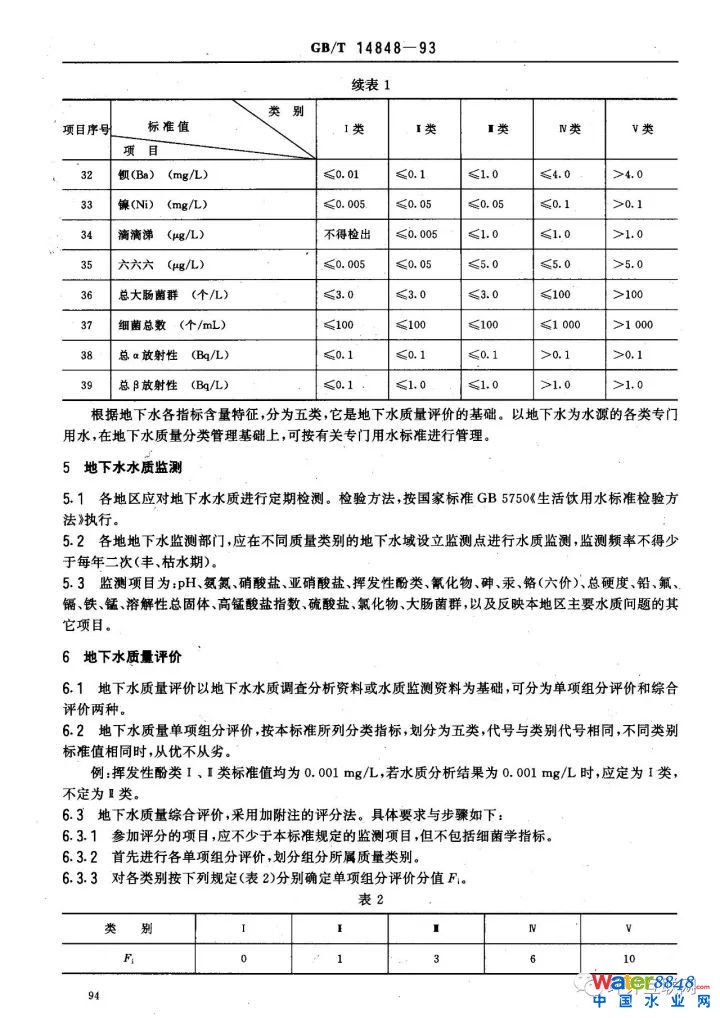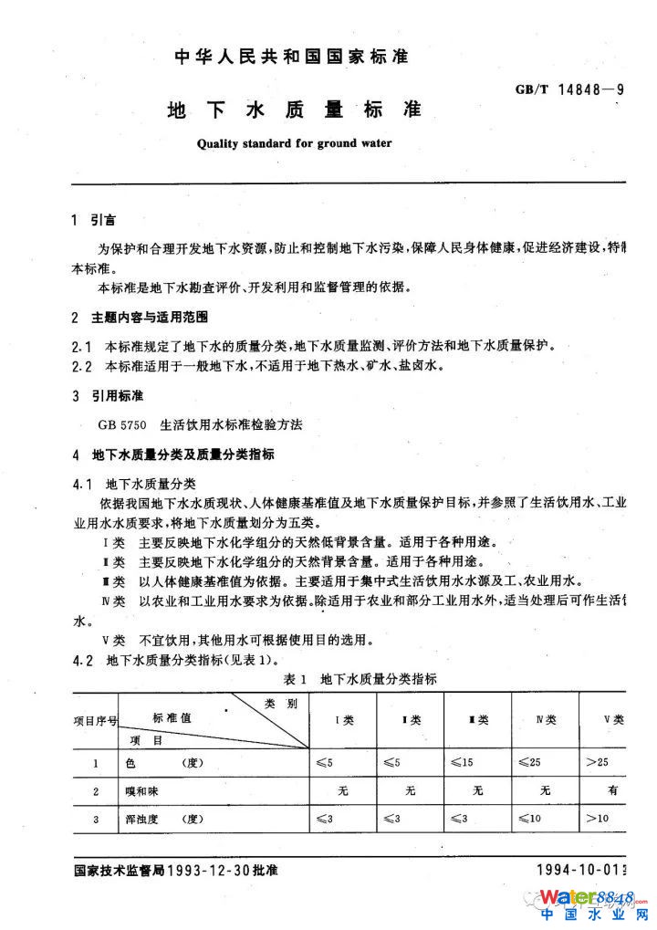 地下水質(zhì)量標(biāo)準(zhǔn)(GB/T 14848-93) 1994-10-01實施。