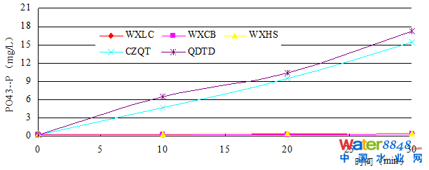 第二組數(shù)據(jù)改為二沉污泥過量加入優(yōu)質(zhì)碳源,測試強(qiáng)化厭氧釋磷效果,結(jié)果發(fā)現(xiàn)AB、C廠仍沒有厭氧釋磷,而DE廠厭氧釋磷現(xiàn)象明顯。