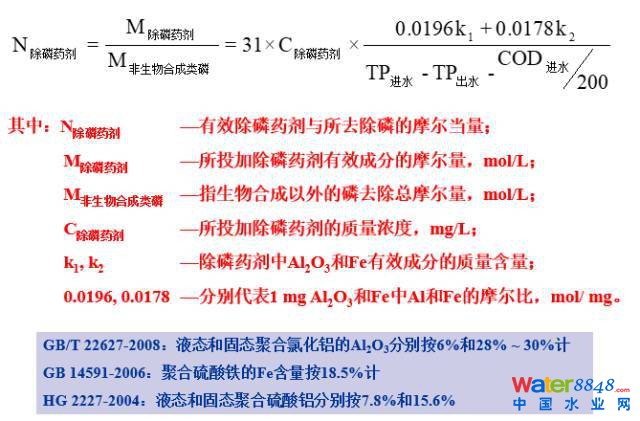 今天還要跟大家交流一個化學(xué)協(xié)同除磷的問題,這個問題也是發(fā)表在我們《中國給水排水》201510月的期刊上了。我們的研究是起源于我們所承擔(dān)的一個863污泥磷回收課題,當(dāng)時我們在太湖流域某化學(xué)協(xié)同除磷污水處理廠開展污泥系統(tǒng)釋磷實(shí)驗(yàn),結(jié)果發(fā)現(xiàn)我們超量投加了優(yōu)質(zhì)碳源,但是磷的濃度卻很低,只有酸堿調(diào)理的時候才有磷釋放。而同期其他課題組在非化學(xué)協(xié)同除磷污水處理廠同步進(jìn)行的試驗(yàn)磷濃度卻很高,因此我們覺得化學(xué)協(xié)同除磷一定程度上影響了我們生物除磷功能。為此,我們首先研究了一下全國有多少污水廠在用到化學(xué)除磷藥劑,結(jié)果發(fā)現(xiàn)上千座污水處理廠都在投加除磷藥劑,不管是協(xié)同除磷還是后置除磷。那么既然這么多,我們就要研究一下藥劑投加量和除磷量的關(guān)系,為此我們查閱了相關(guān)材料,感覺直接相關(guān)的公式并不好用,因此我們根據(jù)理論反應(yīng)公式,試圖建立一個兩者摩爾當(dāng)量的計算公式,并利用這個公式對上面提到的近千座化學(xué)除磷污水處理廠進(jìn)行了藥劑投加量和除磷量摩爾當(dāng)量的計算。