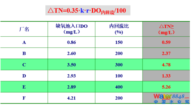 我們用這個模型對幾個污水處理廠進(jìn)行了簡單的測算,也就會發(fā)現(xiàn)回流混合液的溶解氧會導(dǎo)致污水處理廠出現(xiàn)1~ 5 mg/L的硝酸鹽氮去除損失量。這個損失量對于部分污水處理廠是巨大的,因?yàn)楸仨毻都酉鄳?yīng)量的碳源,如果能很好的控制溶解氧問題,部分污水處理廠就可以省掉碳源的問題。