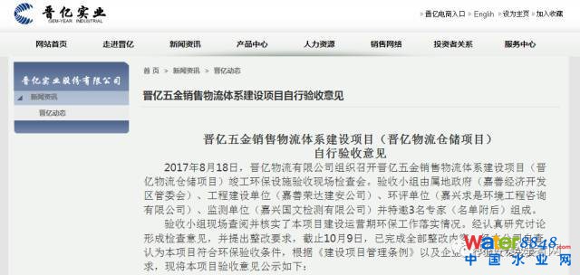 10月9日,晉億物流有限公司的晉億五金銷售物流體系建設(shè)項目(晉億物流倉儲項目)完成全部整改內(nèi)容,符合環(huán)保驗收條件,正式向社會公示驗收意見。與以往不同的是,這份驗收意見并未按慣例顯示在嘉善縣環(huán)境保護局的官網(wǎng)首頁,而是發(fā)布在了晉億實業(yè)的企業(yè)網(wǎng)站上。