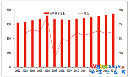 城市供水總量保持穩(wěn)定增長(億立方米)