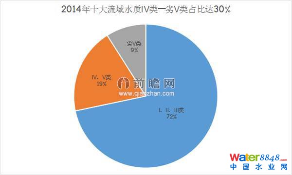 其三,我國水污染問題嚴重,2014年十大流域水質IV類—劣V類累計占比達30%,接近三分之一。