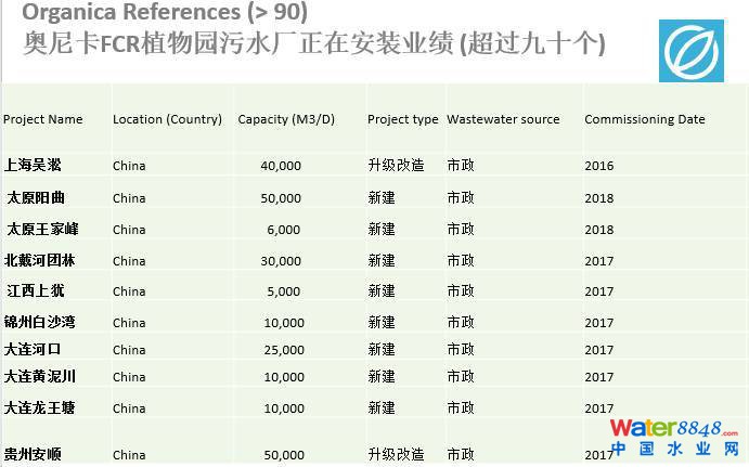 下面這個(gè)業(yè)績表是在中國區(qū)今年或者明年陸續(xù)開工做的項(xiàng)目,目前奧尼卡FCR污水廠的全球業(yè)績已經(jīng)超過90個(gè),可以看到中國的很多項(xiàng)目正在集中建設(shè),所以現(xiàn)在接下來的兩三年之內(nèi),這些項(xiàng)目都會(huì)投入生產(chǎn),你會(huì)發(fā)現(xiàn)越來越多的花園一樣污水處理廠出現(xiàn)在您的周圍。