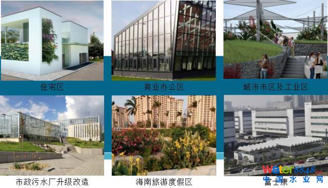 下一張圖片可以看到我們的FCR花園式污水處理廠的廣泛的應(yīng)用領(lǐng)域,學(xué)校、工廠、市中心,交通樞紐等等,可以建在任何大家想要建的地方,由于有獨(dú)特的溫室結(jié)構(gòu),使居民和百姓對(duì)這個(gè)污水處理廠心里反感程度非常低,所以污水處理廠緩沖區(qū)非常小,對(duì)周圍居民的影響就非常小。