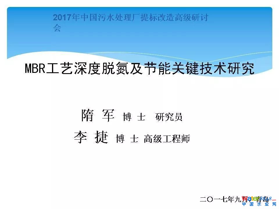 核心提示:MBR工藝深度脫氮及節(jié)能關(guān)鍵技術(shù)研究 報(bào)告人: 廣東首匯藍(lán)天工程科技有限公司 隋軍 董事長(zhǎng)