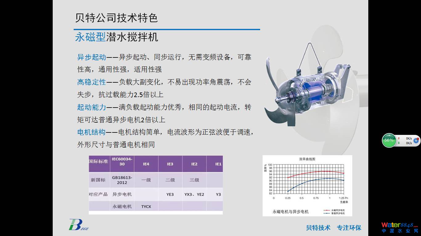 下面是我們公司的其他幾個(gè)特色產(chǎn)品,第一個(gè)是節(jié)能型潛水?dāng)嚢铏C(jī),采用了節(jié)能電機(jī)包括專(zhuān)用的傳動(dòng)機(jī)構(gòu),區(qū)別以前多極電機(jī)產(chǎn)品,節(jié)能效果好。第二是永磁型潛水?dāng)嚢铏C(jī),具有優(yōu)秀的啟動(dòng)和抗過(guò)載能力。第三個(gè)是普通型的推流器,我們?cè)跍p速機(jī)構(gòu)和葉槳工藝上做優(yōu)化提升。第四個(gè)是雙曲面攪拌機(jī),這個(gè)產(chǎn)品近幾年我們做污水廠(chǎng)升級(jí)改造用的比較多的產(chǎn)品。另外是兩個(gè)小產(chǎn)品,一個(gè)是脈動(dòng)式吸沫機(jī),可以去除生化池表面的浮渣。另一個(gè)是為厭氧反應(yīng)罐做的攪拌器。