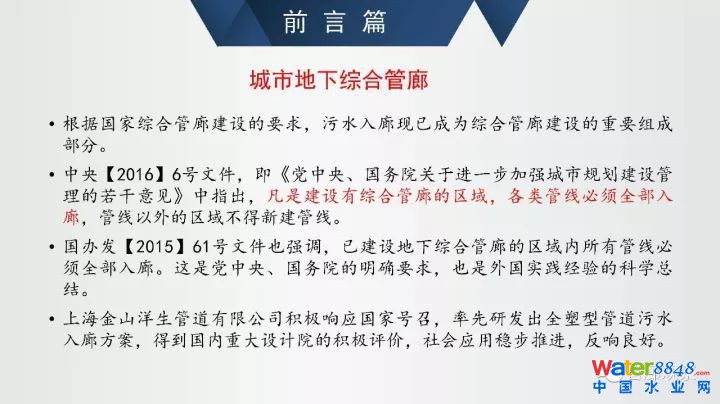 排水入廊:污水入廊系統(tǒng)解決方案 管廊新概念:動脈管廊、智慧管廊、綠色管廊、文化管廊、海綿管廊、商業(yè)管廊、金融管廊、機制管廊!