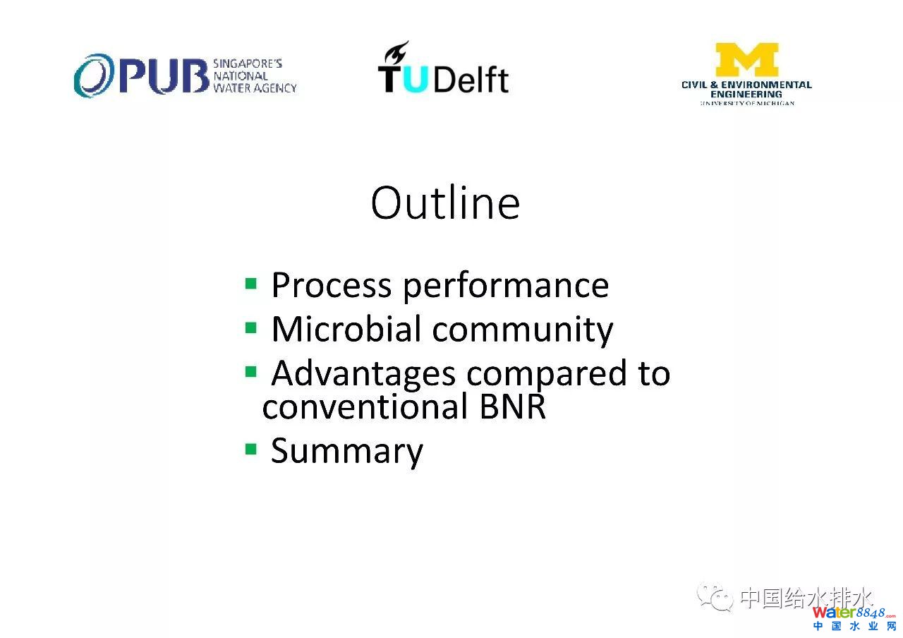 在2017年11月7—10日由國(guó)際水協(xié)(IWA)和重慶大學(xué)主辦的題為“可持續(xù)的廢水處理:研究、規(guī)劃、設(shè)計(jì)和運(yùn)行”(IWA-NRR-LWWTP 2017)國(guó)際會(huì)議上,來(lái)自荷蘭代爾夫特技術(shù)大學(xué)(TU Delft) 的Mark van Loosdrecht教授做了題為“新概念的廢水處理的創(chuàng)新與實(shí)踐(Innovations and Practical Experience of New Concepts in Wastewater Treatment)”的主題演講。他舉了2個(gè)已經(jīng)工業(yè)化應(yīng)用的實(shí)例。一個(gè)是新加坡樟宜污水廠的主流厭氧氨氧化,另一個(gè)是Nereda好氧顆粒污泥技術(shù)的應(yīng)用。新加坡公用事業(yè)局(PUB)曹業(yè)始博士在此次會(huì)議上,對(duì)樟宜污水廠2011—2016年主流短程硝化和厭氧氨氧化的運(yùn)行狀況及微生物研究情況做了總結(jié)報(bào)告。