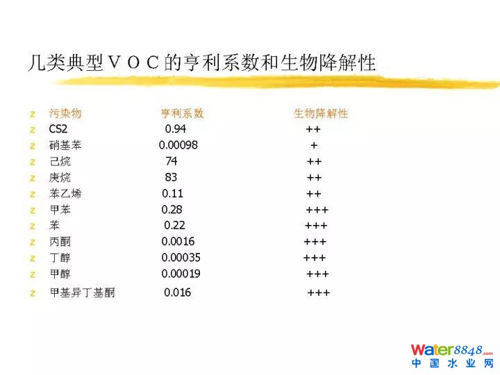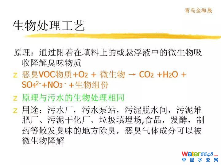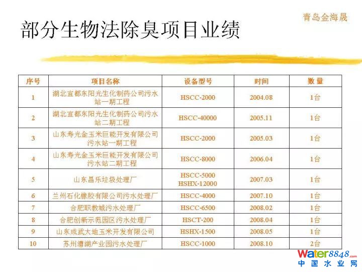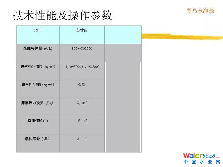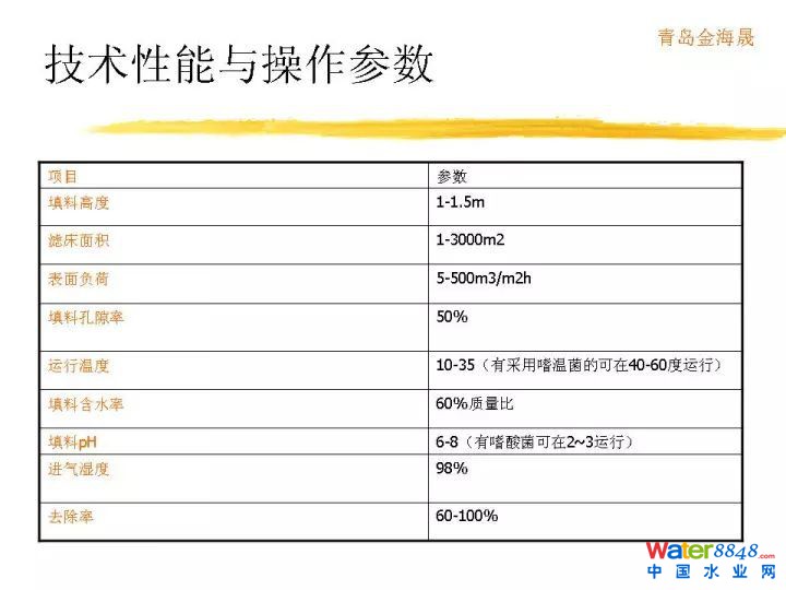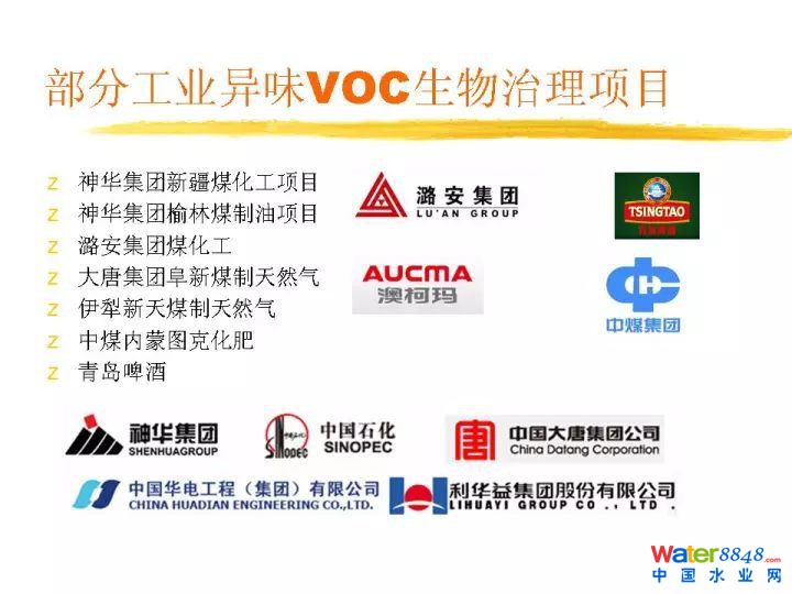 在這里我們可以列一列,歐洲對于各種不同工藝的投資,還有運營費用做一下統(tǒng)計。這是惡臭異味VOC處理原則,首先得評估成分,濃度,氣量,排放規(guī)律性等。這個是生物除臭需考慮的因素。這是不同生物除臭工藝的特點和適用性。分為生物洗滌、生物滴濾、生物過濾。有什么區(qū)別?從微生物固定狀態(tài),液相流動狀態(tài),廢氣水溶性,適用濃度,含塵量等決定所用工藝。技術參數(shù)不多講了。這是操作指標,這是去除效率。這是我們做的實際案例。我們從2004年就開始做臭氣處理,是臭氣處理歷史比較悠久的單位。項目案例各種各樣,非常多。謝謝。